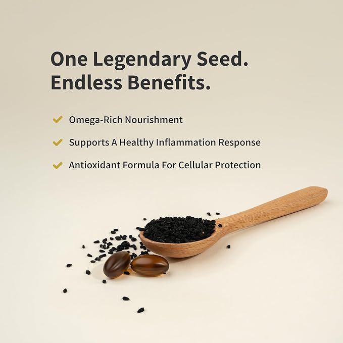 - Supports Healthy Joints: Enriched with omega 3, 6, and 9 fatty acids, Black Cumin Seed Oil helps nourish and lubricate joints and connective tissues for enhanced mobility and comfort.