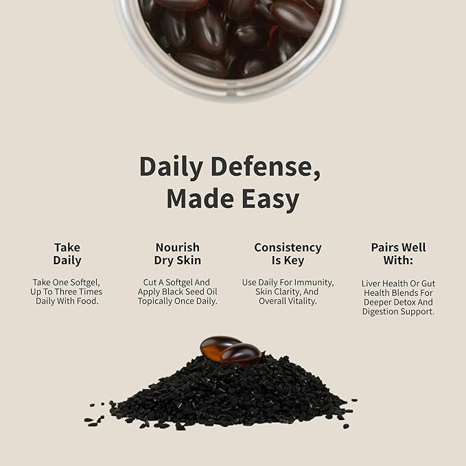 - Encourages a Balanced Inflammation Response: Harness the natural anti-inflammatory potential of Black Seed Oil to support a healthy inflammation response and overall wellness.