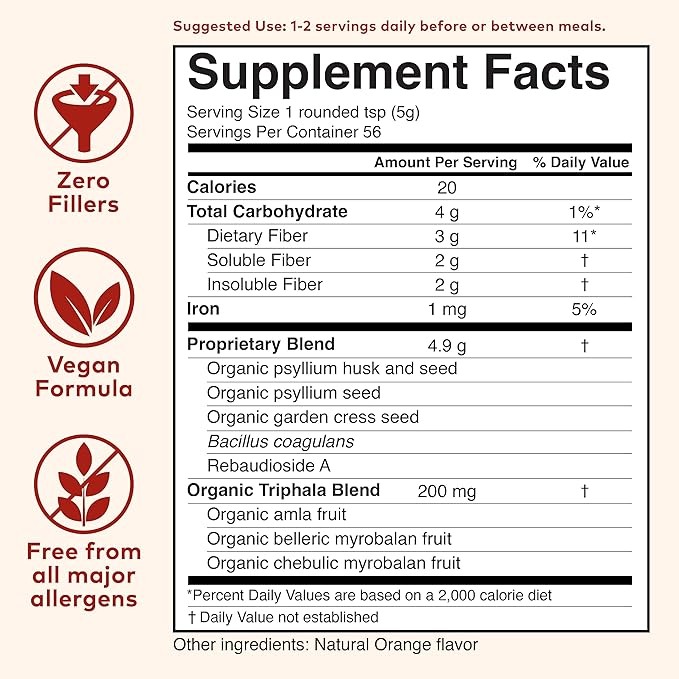 - ADD TO ANY RECIPE: Our tasty formulation with organic orange flavor is a versatile product-- use our psyllium husk powder for baking or add a scoop to your favorite smoothie