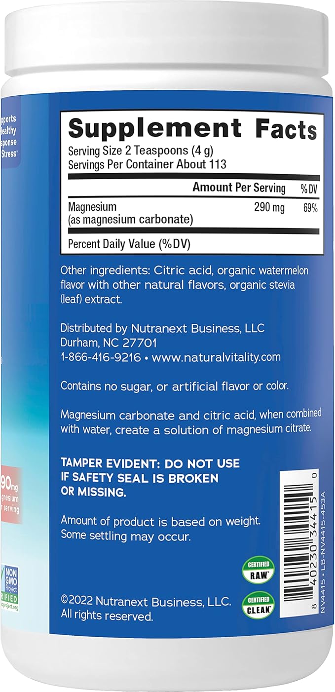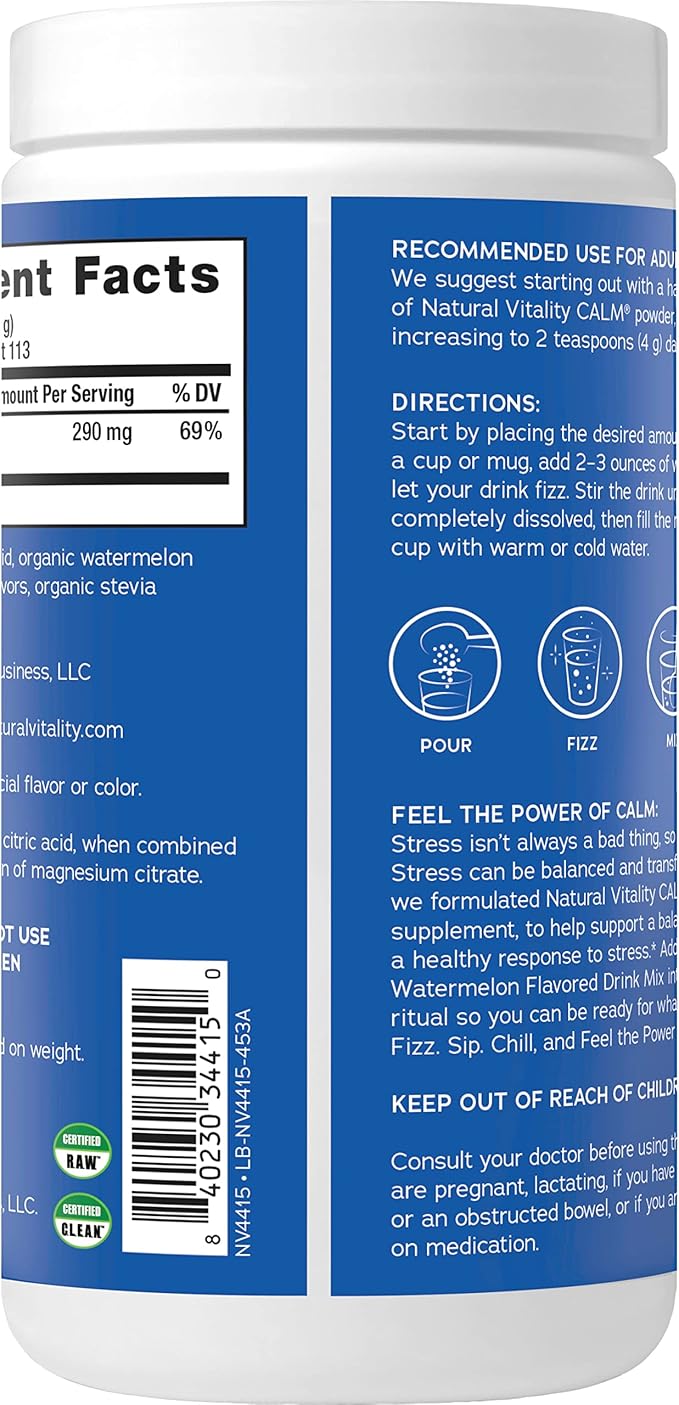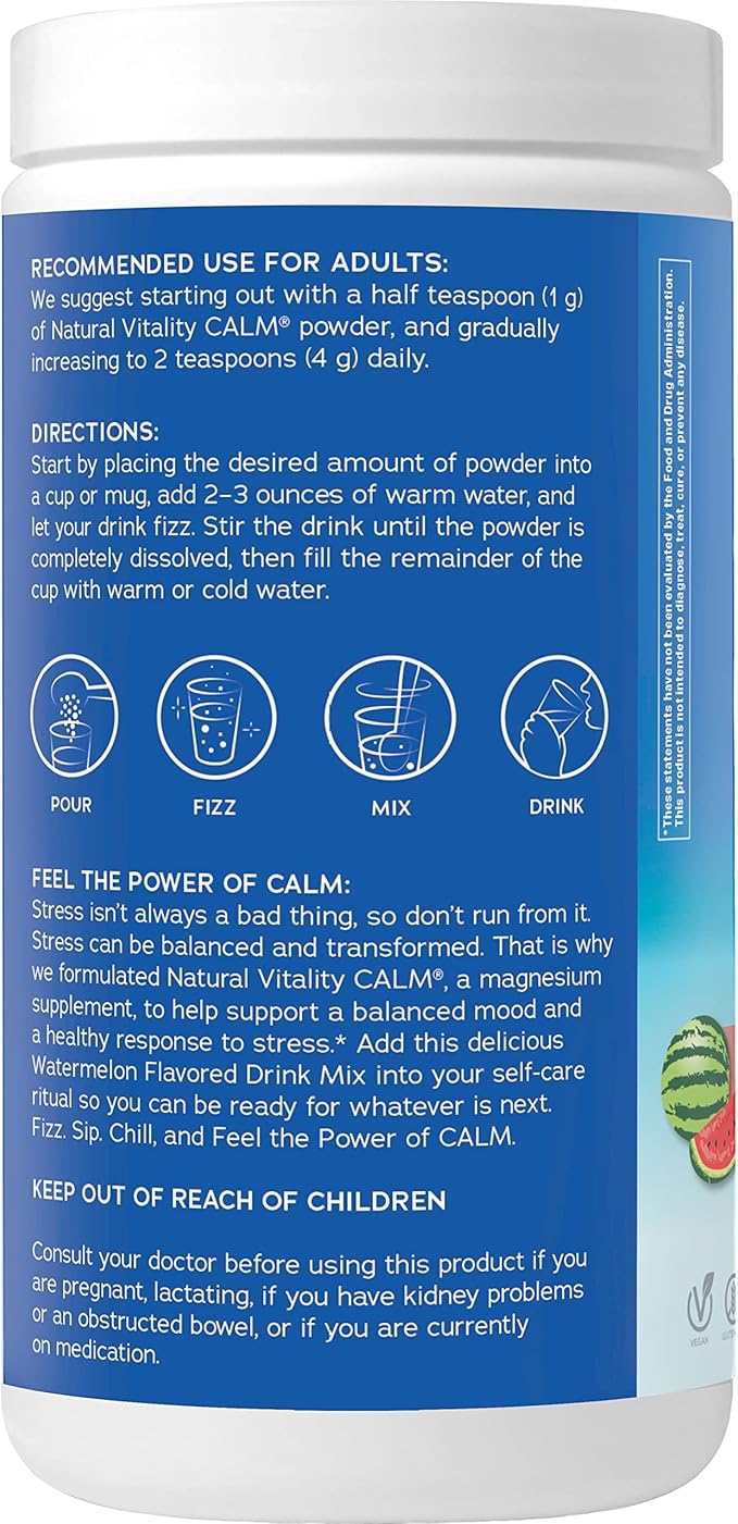 Natural Vitality Calm, Magnesium Supplement, Anti-Stress Drink Mix Powder, Gluten Free, Vegan, & Non-GMO, Watermelon, 16 oz