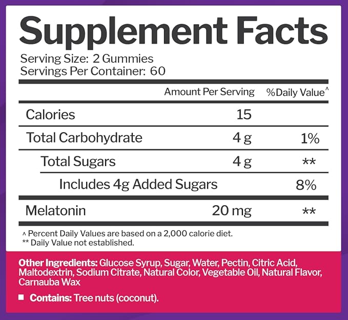 - 20 MG of Melatonin Per Serving - Our maximum strength Melatonin gummies contain 10mg of Melatonin in each gummy or 20mg in a full serving which will get you to sleep faster and help your body to stay asleep longer.