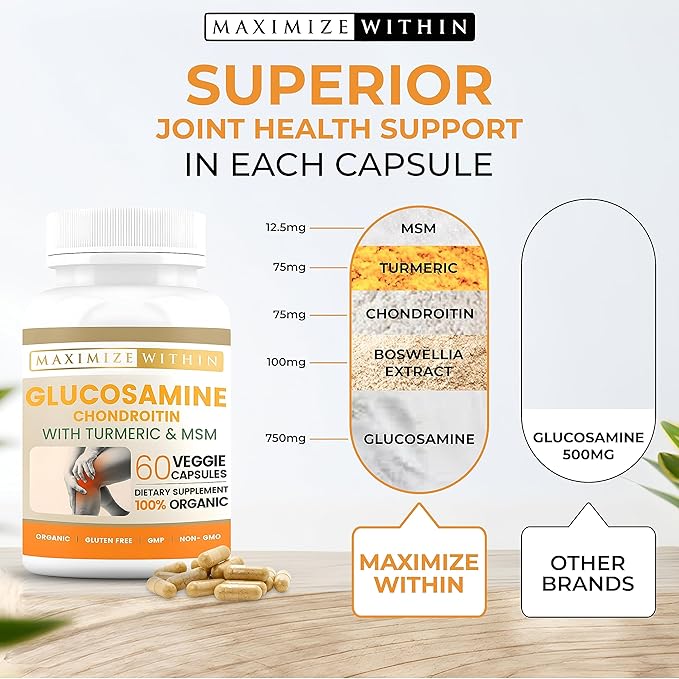 - ADVANCED FORMULA - PROVEN INGREDIENTS - 2,225MG: Our Glucosamine Chondroitin Complex features unique ingredients that work together, providing robust support for the musculoskeletal system. This supplement includes Boswellia, Turmeric, and MSM. These ingredients may help support joint comfort and can provide antioxidant support.