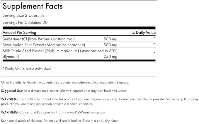 - Includes berberine, bitter melon and milk thistle for well-rounded support