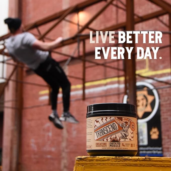 Earth Fed Muscle Transcend Creatine Monohydrate - 100% German Creapure, Muscle Recovery, Muscle Building, Cellular Energy Production - Gluten Free, Soy Free - Unflavored 5g per Serving, 60 Servings