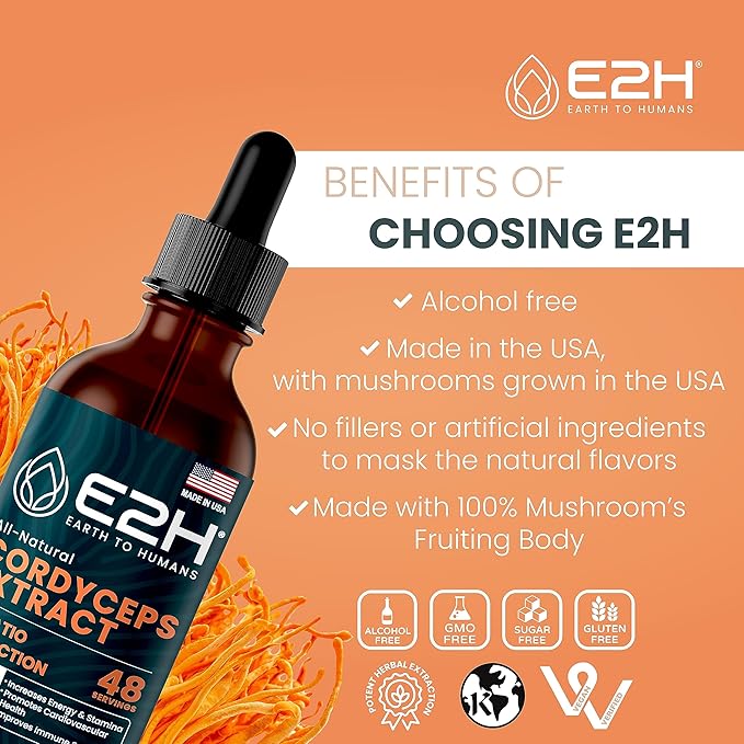 E2H Cordyceps Mushroom Extract - All-Natural Immune System, Energy & Stamina Support from Advanced Mushroom Supplement - Cordyceps Mushrooms Supplement - Non-GMO, Vegan - (2 Bottles)
