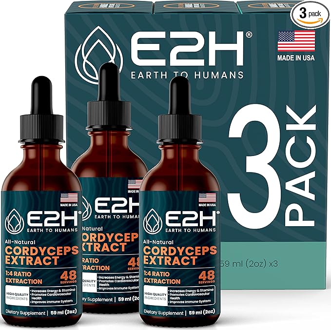 E2H Cordyceps Mushroom Extract - All-Natural Immune System, Energy & Stamina Support from Advanced Mushroom Supplement - Cordyceps Mushrooms Supplement - Non-GMO, Vegan (3 Bottles)