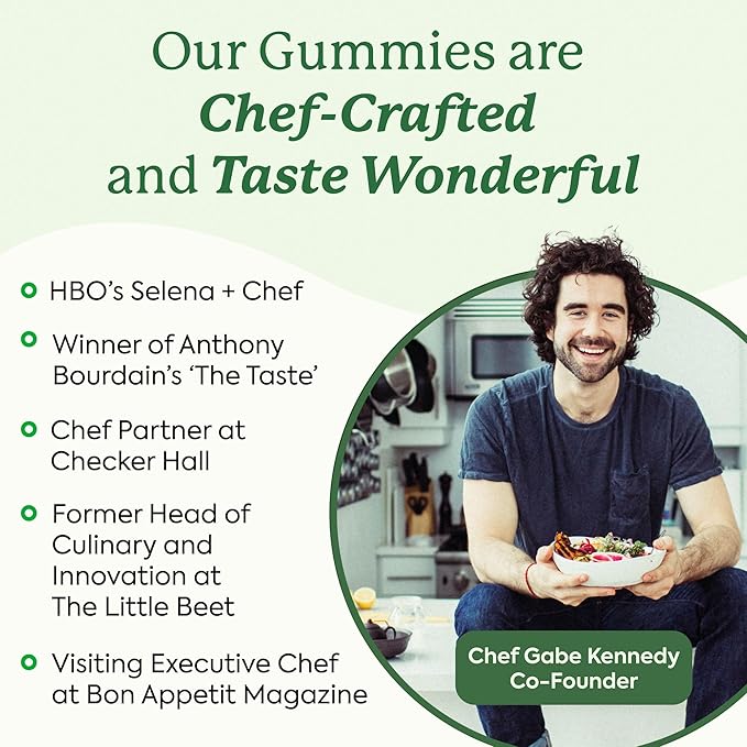 - Delicious Green Apple Flavor: Indulge your taste buds with the delightful green apple flavor of our vegetable gummies. Chef-crafted with natural ingredients, these gummies are vegan, non-GMO, gelatin-free, and gluten-free. Plus, they contain no sugar, artificial dyes, or corn syrup. Enjoy 60 vegetable gummies per bag.