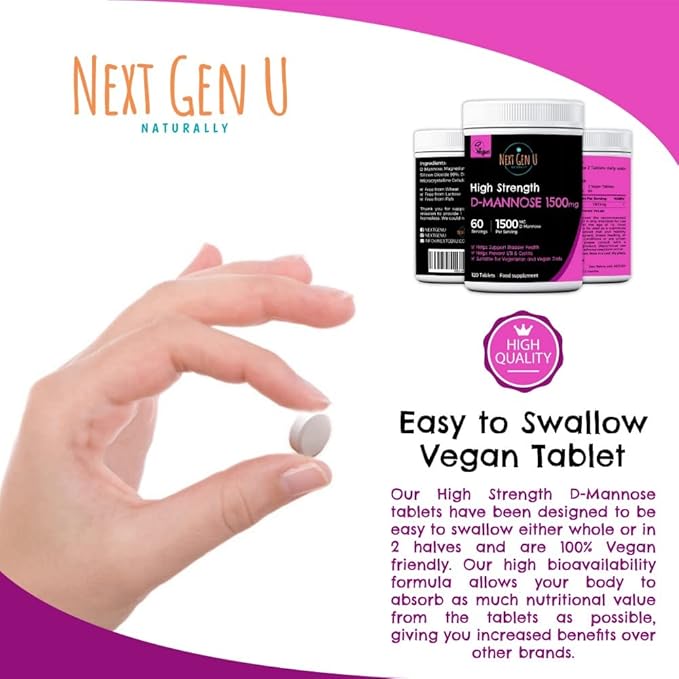 D Mannose - 1500 mg - Health Food & Dietary Supplement - 120 Vegan Caplets - May Help Support a Healthy Urinary Tract & Bladder - by NextGenU