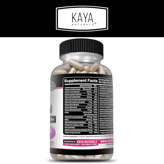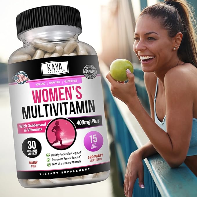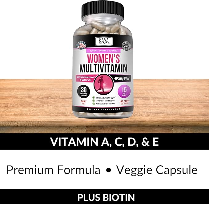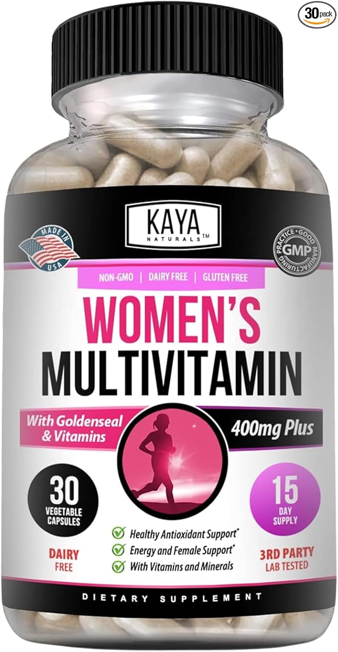 Kaya Naturals Women's Multivitamin, Overall Healthy Antioxidant, and Immune Support, Vitamins A, D, C, E, Biotin, Folic Acid, & Multi-Mineral, Energy & Metabolism Vitamin Supplement 30 Count
