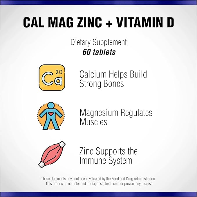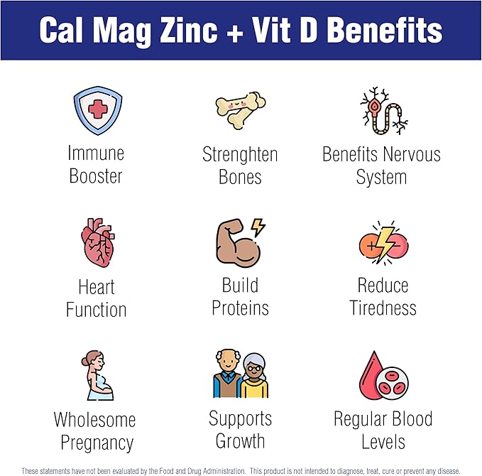 - [CALCIUM MAGNESIUM ZINC VIT D DAILY SUPPLEMENT] Cal-mag-zinc Plus Vitamin D is the combination of three important minerals and a vitamin essential for your body, supporting an active and wholesome lifestyle.