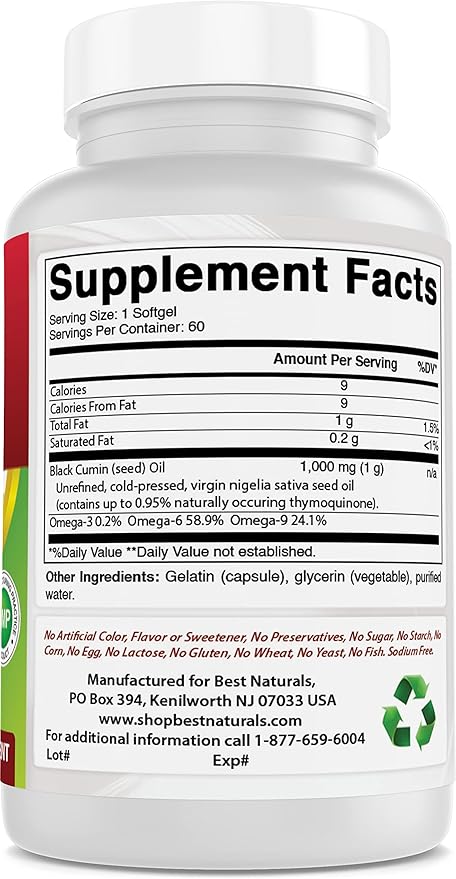 - Best Naturals BLACK CUMIN SOFTGELS is containing Minimum 0.95% Thymoquinone (TQ)