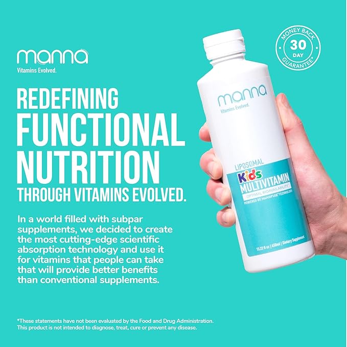 Manna Vitamins Evolved Liposomal Kids Multivitamin - Vitamin D3 & Vitamin A Supplement - Vitamin B12 & Vitamin C Supplement - Kids Liquid Multivitamin - Immune Support Supplement for Children