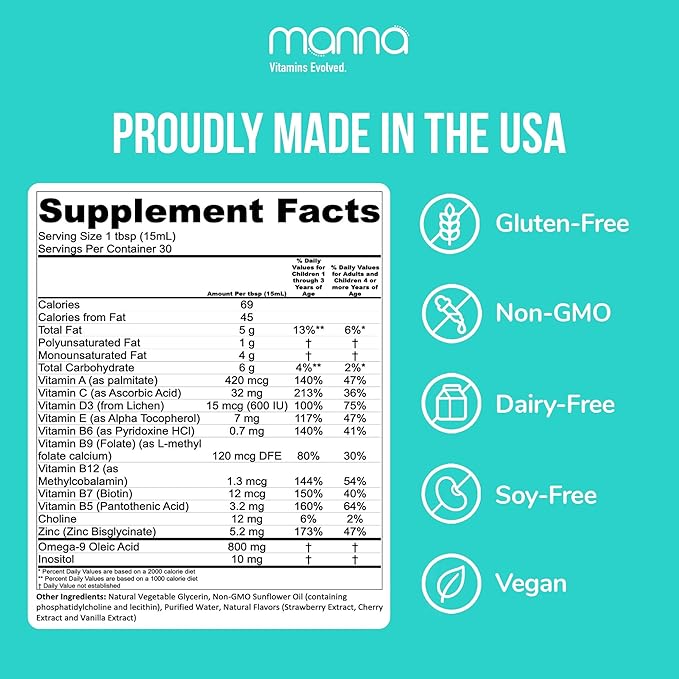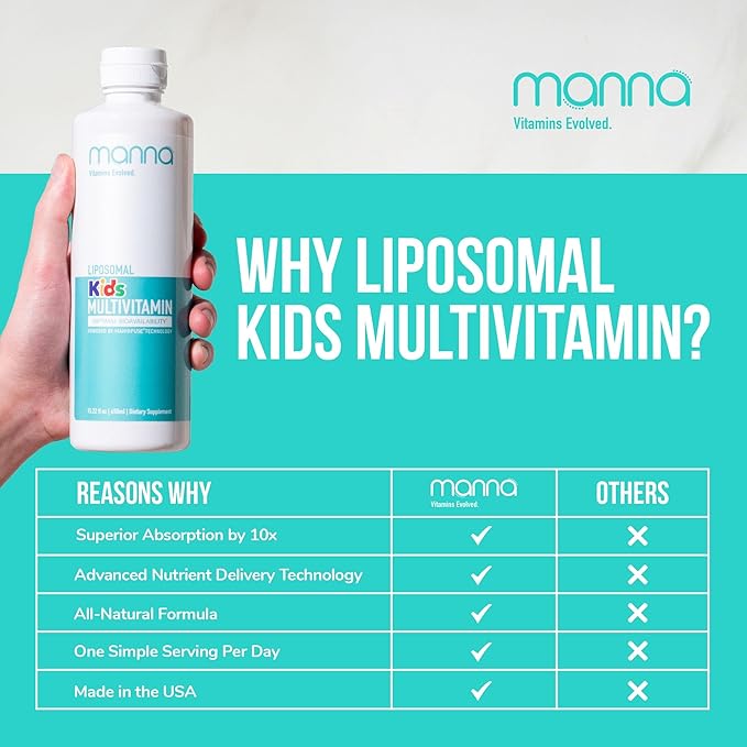 - Liposomal Construction: The liposomal structure of Manna’s children's multivitamin with vitamin B6 and choline surpass all competitor methods because Manna’s approach works WITH your body to enhance nutrient absorption that the supplements provide.