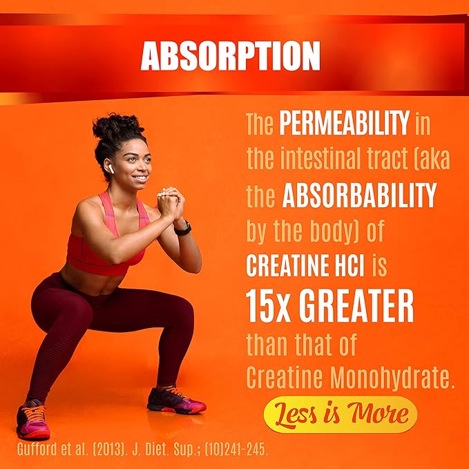 - LESS IS MORE: Because Creatine HCl has permeability in the digestive tract (i.e. absorbability by the body) 15 times greater than Monohydrate, only 1-2g of Creatine HCl is needed for the same effect of 5 grams of Monohydrate. No more loading phase, no more dreading to gulp down 6+ large pills of Monohydrate. Take 3 capsules of Folona Creatine HMB with 8-12 oz of water daily and see your body transform in less than two weeks!