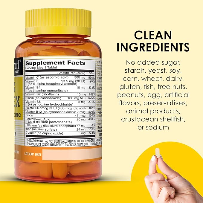 - B-COMPLEX: An easy-to-swallow tablet for adults 18+ to take 1 daily, preferably with food, as a dietary supplement