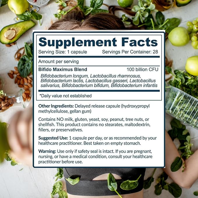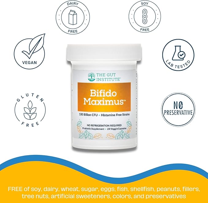 Bifido Maximus Ultra High Potency Probiotics for Women and Men - Bifidobacterium longum 100 Billion CFUs - 28 ct - 7 Strains - No Histamines - No Refrigeration Needed - Made in USA