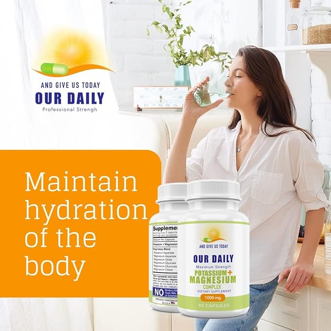 Our Daily Vites Potassium Magnesium Supplement 1000 mg - Powerful Magnesium Potassium Supplement with 5 Forms of Magnesium for Muscle Recovery, Leg Cramps, Gluten-Free Non-GMO - 90 Caps (1000 mg)