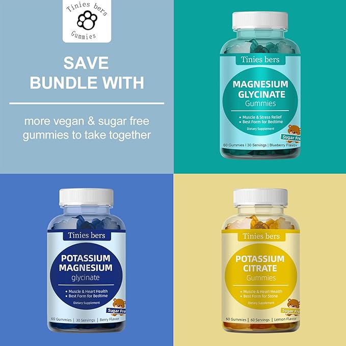 - Yummy and Health: Chewable potassium magnesium supplement gummies with a soft texture and berry flavor, are GMP compliant and Lab-tested. If you receive Tinies bers product with any problems, please contact us immediately. The EXP date is marked on the label of each bottle.