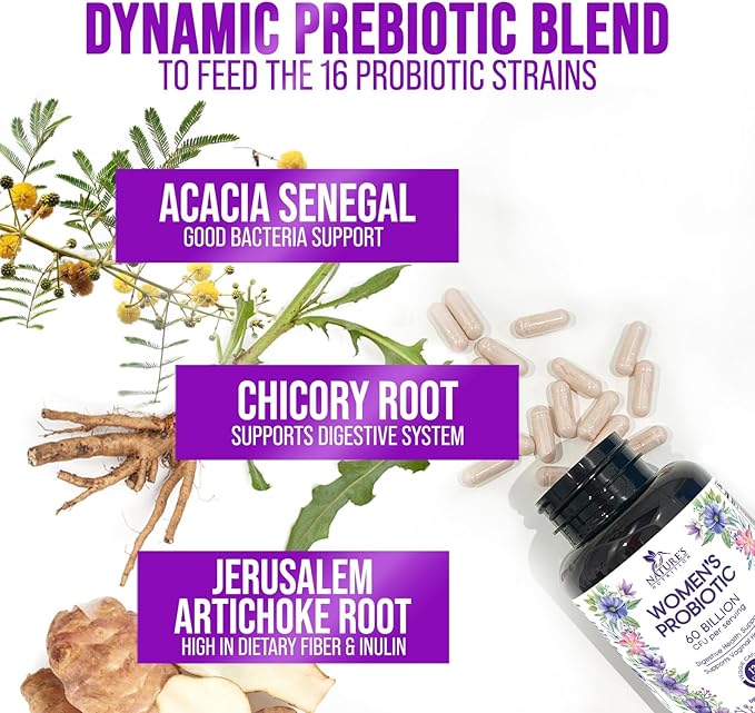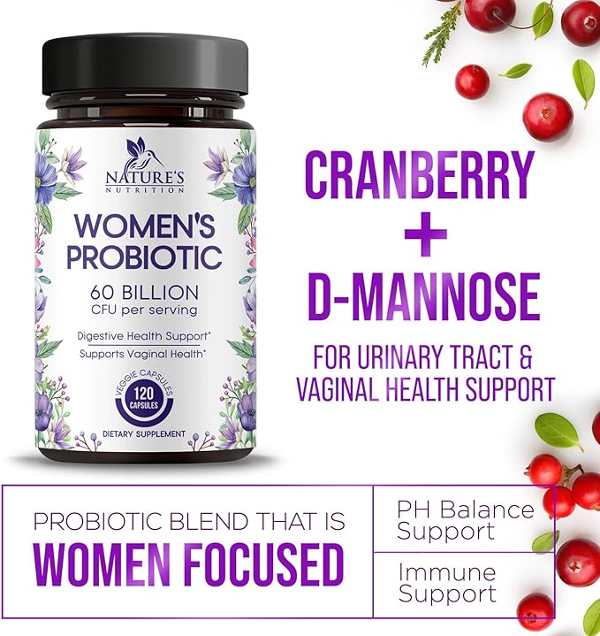 - PROBIOTICS FOR WOMEN: 60 Billion cfu Nature's Nutrition daily womens probiotic pills supplement with strains lactobacillus acidophilus cranberry digestive gut feminine health vaginal ph balance support and best prebiotics female probiotics capsules hello no gummies gummy choice vitamins prebiotic raw probioticos para mujer vaginial nature formulated woman vag care digestion probotic lovely pre biotic vaginigal probotics supplements 40 50