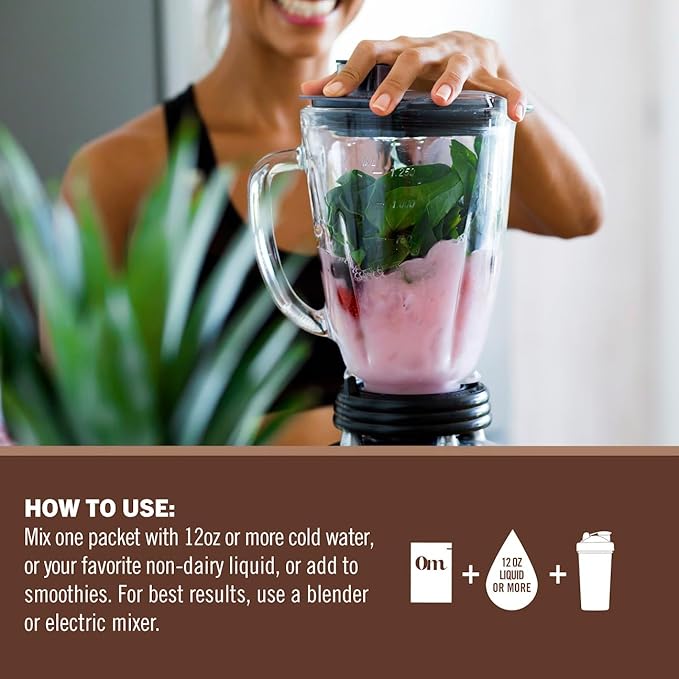 OM Mushroom Superfood Master Blend Mushrooms & Adaptogens, Creamy Chocolate Plant Protein, Single Serve, 10 Count, 10 Mushroom Complex, Lion's Mane, Ashwagandha for Energy, Recovery, Stress Relief