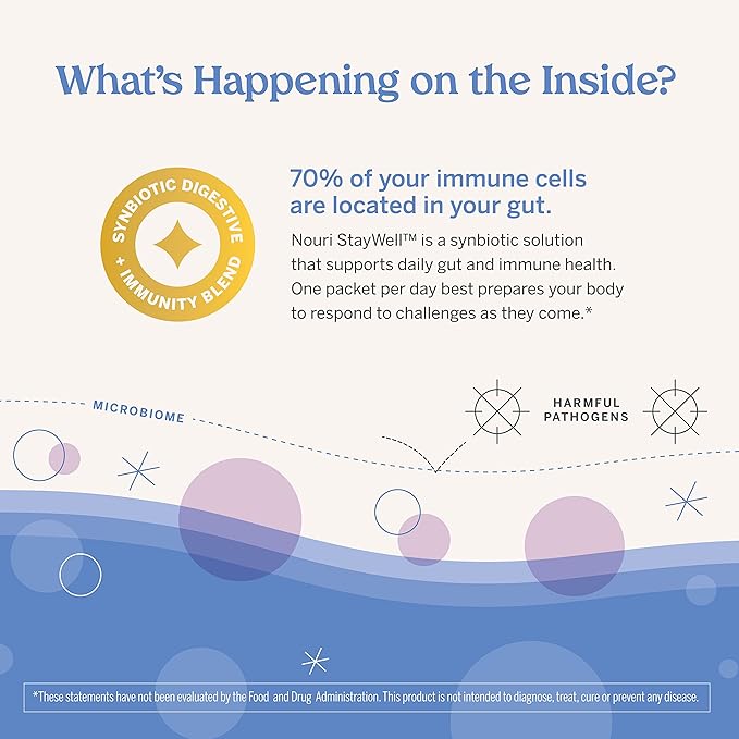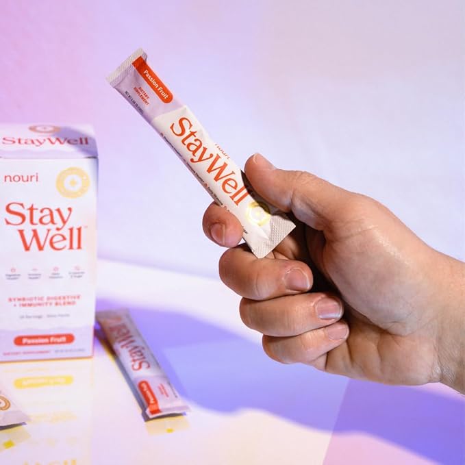 - PREBIOTIC AND PROBIOTIC - Nouri’s StayWell is a synbiotic solution that supports daily gut and immune health. One packet per day best prepares your body to respond to challenges as they come. Each StayWell packet delivers prebiotics, probiotics, immunobiotics, and daily vitamins with zero sugar and zero calories. Convenient, effective, and delicious.