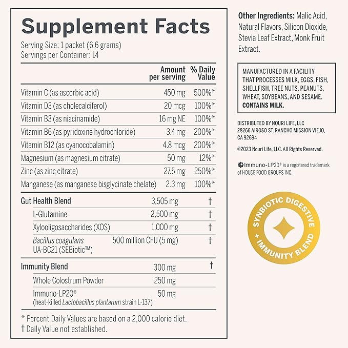 - 3-IN-1 SUPPLEMENT - Nouri StayWell Combines synbiotics, L-Glutamine, and Colostrum to help repair your gut, build your immune system, and support healthy digestion.