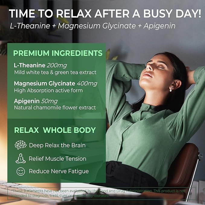 - 【Sleep Prep Made Easy – Unwind Naturally After a Busy Day】Ease out of your busy day and into a restful state with our calming liposomal L-theanine gummies. The blend of L-theanine, magnesium glycinate, and apigenin from chamomile supports a gentle wind-down ritual by relaxing the mind, easing body tension, and setting the stage for a peaceful evening. It's your nightly nudge to let go, slow down, and signal your body it's time to rest