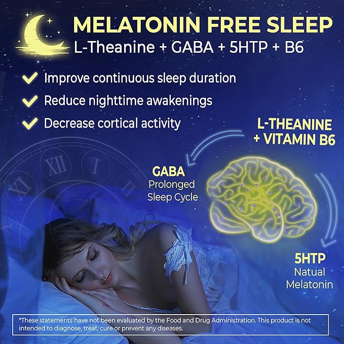 - 【Stay Asleep, Sleep Deeper – Naturally Boost Your Own Melatonin】 We don’t rely on melatonin—we help your body make its own. Our unique blend of L-theanine and Vitamin B6 works synergistically with 5-HTP to support your brain’s natural 𝑠𝑒𝑟𝑜𝑡𝑜𝑛𝑖𝑛 pathway, which in turn encourages healthy melatonin production. Combined with GABA for calming brain waves, this formula helps you stay asleep longer and sleep deeper—all in the pursuit of a natural, healthy sleep.
