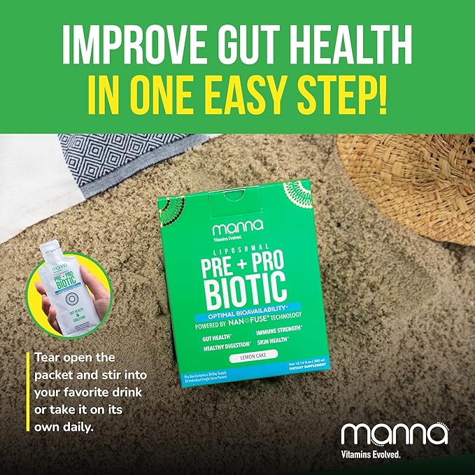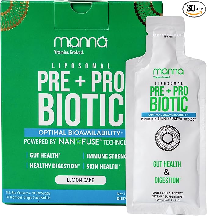 Manna Liposomal Prebiotic + Probiotic Packets – 40 Billion CFU, 8 Strains – Gut, Digestive & Immune Support – High Absorption, Non-GMO, Shelf-Stable, Daily Supplement, 30 Single Serves