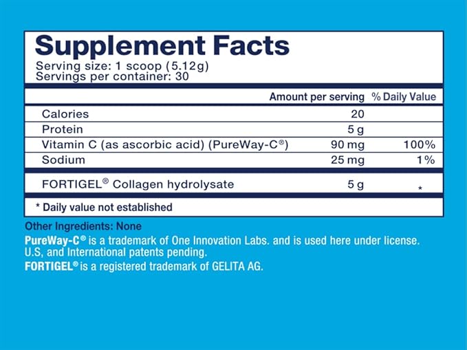 - CONTAINS A SPECIAL FORM OF VITAMIN C – Each serving of My Daily Collagen contains a special patented form of Vitamin C called PUREWAY-C. Vitamin C is necessary for collagen biosynthesis. PUREWAY-C has been shown in laboratory studies to have superior uptake, bioavailability (absorption) and retention in cells than other forms of vitamin C. It is also clinically proven to support robust immune function and normal inflammation levels.