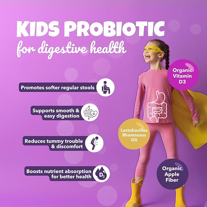 - SUPPORTS HAPPY TUMMIES: Having ingredients like Organic Apple Fiber, Lactobacillus acidophilus and Lactobacillus rhamnosus GG, this combination of prebiotics and probiotics for kids promotes smooth digestion and a balanced gut—helping kids feel their best every day!