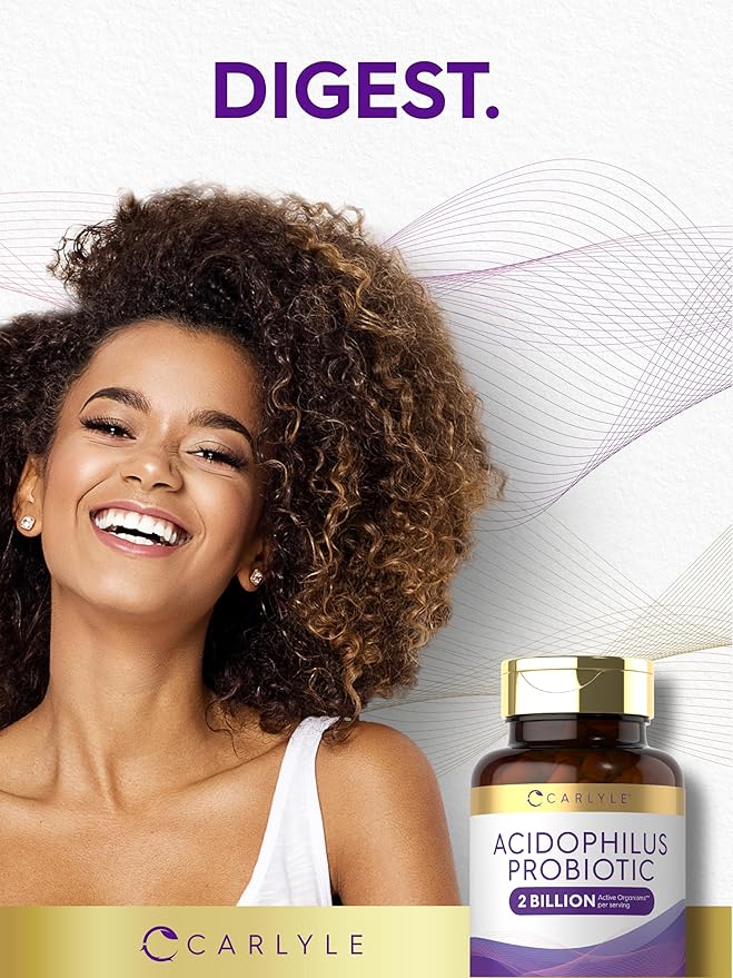 Carlyle Acidophilus Probiotic for Women & Men's Digestive Health | 2 Billion CFU | 180 Quick Release Capsules | Non-GMO & Gluten Free