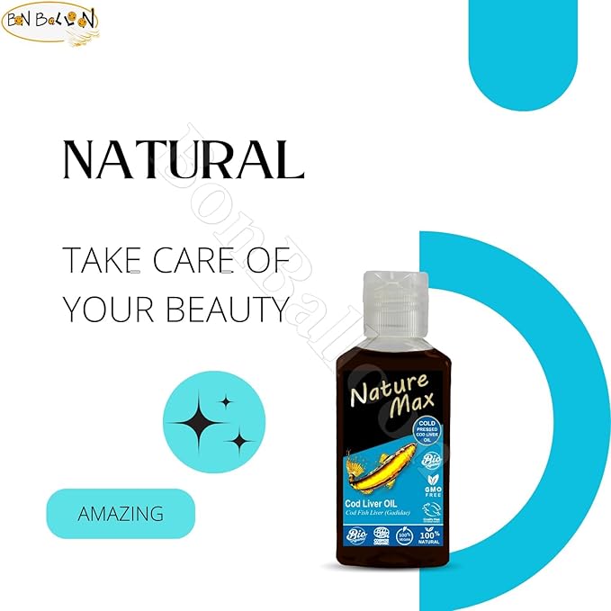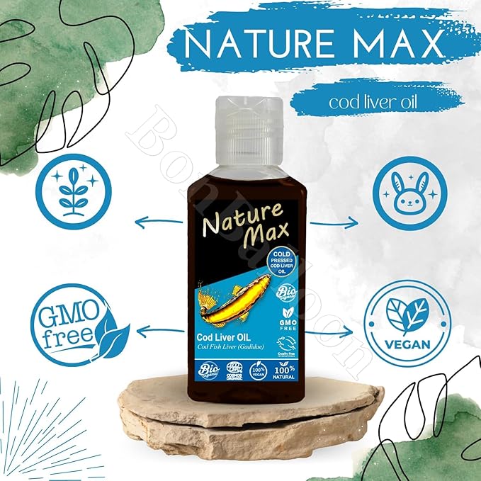 Nature Max Cod Liver Blubber Oil Natural Undiluted Pure For Hair & Skin Care & Food Cold Pressed Premium (1Pack = 2.70 oz / 80 ml) زيت كبد الحوت