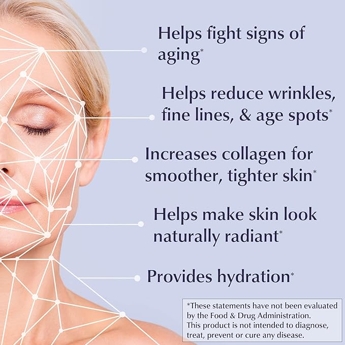 - CLINICALLY TESTED FOR WRINKLES & AGE SPOTS: In our study, published in the Journal of the American Nutraceutical Association, patients saw improvements in appearance in 8 weeks with an average blood collagen increase of 114%. Super youthful skin!