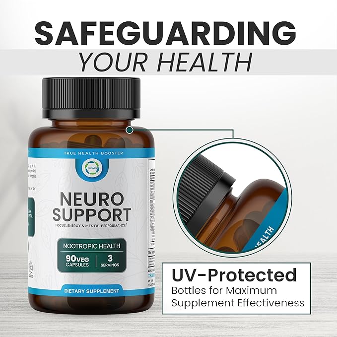 Neuro Support - Premium Nootropic Supplement for Focus, Energy, Mental Clarity, and Performance Organic Lion’s Mane, Bacopa Monnieri, Rhodiola, Non-GMO Gluten-Free CDP Choline 90 Veg Capsules