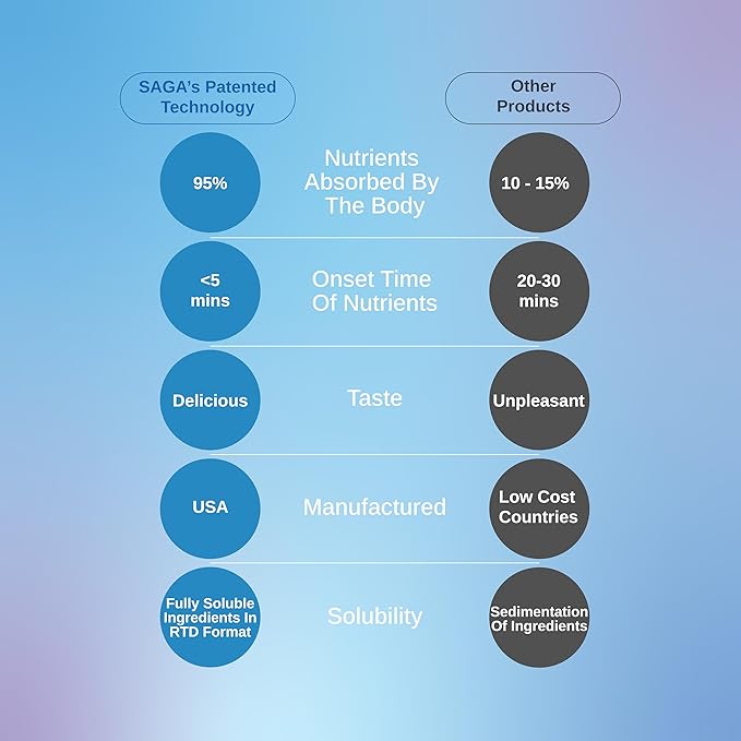 - Science, health & taste: Unveil the synergy of science, health, and taste with our SAGA Serenity wellness shots. Our patented technology preserves plant-based actives' bioavailability, swiftly delivering them to your GI tract. Experience rapid effects, usually within minutes, as kava and adaptogens offer a holistic relaxation journey, making every sip a step toward tranquility