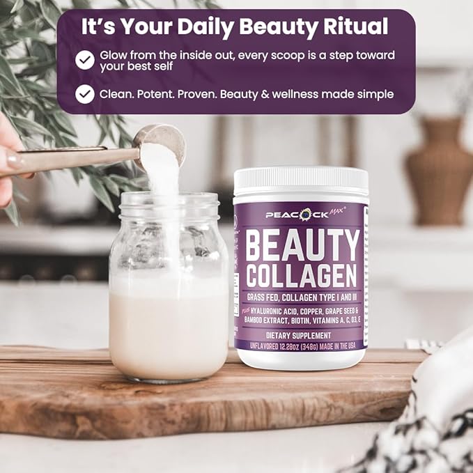 Beauty Collagen Peptides for Women 12.28 oz – Hydrolyzed Collagen Peptides Type I & III Protein Powder with Hyaluronic Acid, Grass Fed Collagen, Biotin, Grape Seed Extract, Multivitamins