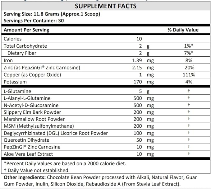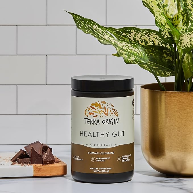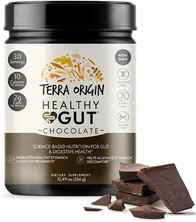 TERRA ORIGIN Healthy Gut Chocolate | 30-Servings with L-Glutamine, Zinc, Glucosamine, Slippery Elm Bark, Marshmallow Root and More!
