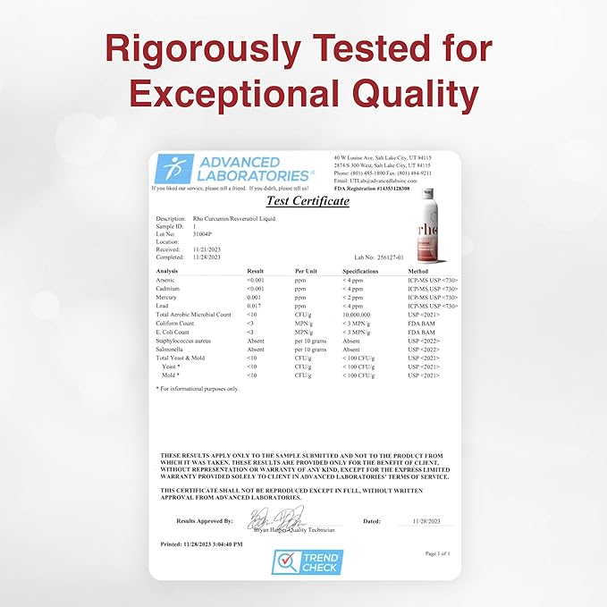 - CONVENIENT LIQUID FORM: Formulated in a liquid form with a fresh mango-orange flavor, Rho Nutrition Liposomal Curcumin + Resveratrol is vegan, sugar free, Keto, non-GMO, gluten, dairy & soy-free. This natural formulation is made with 98% Curcuminoids from Turmeric root extract and Trans-Resveratrol from Japanese Knotweed. Contains no added sugar, fillers, binders, or artificial coloring. Manufactured in the USA in a cGMP facility and third-party tested.