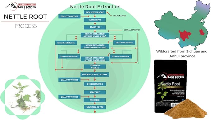 - Wildcrafted: This high-quality extract only uses pure stinging nettle roots (Urtica dioica) harvested by hand. This is a 10:1 hot water extract meaning ten pounds of nettle roots are used for every one pound of powder created.
