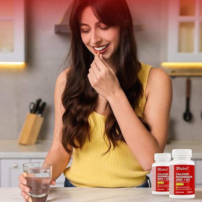 Safrel Calcium Magnesium Zinc with Vitamin D3, 300 Tablets - Calcium 1000 mg, Magnesium 400 mg, Zinc 20 mg & D3 600 IU per Serving