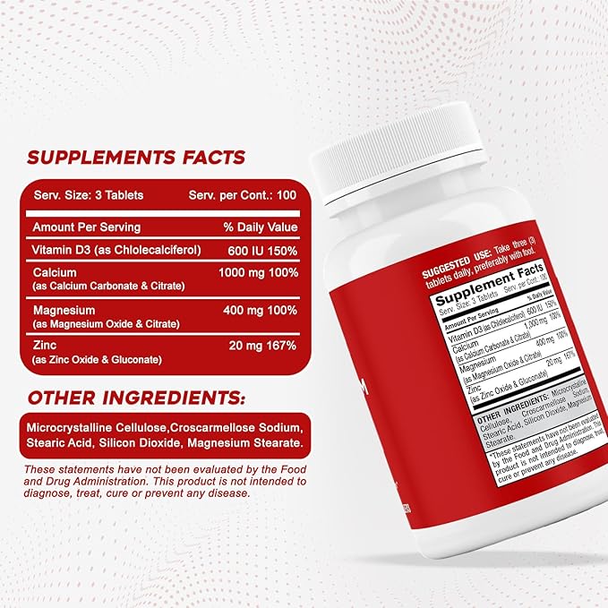 - Comprehensive Bone and Immune Support: Our calcium magnesium zinc formula is enhanced with vitamin d3 for optimal absorption. This vitamin calcium magnesium and zinc blend supports bone health, immune function, and overall wellness, making it a must-have daily supplement.
