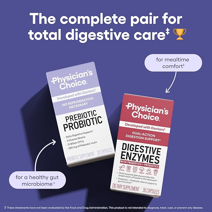 Physician's CHOICE Prebiotic-Probiotic - Multi-Strain Probiotics & Synergistic Prebiotics -Designed for Digestive Health, Supporting Gut Microbiome - Powerful PrePro for Gut Health - for Women & Men