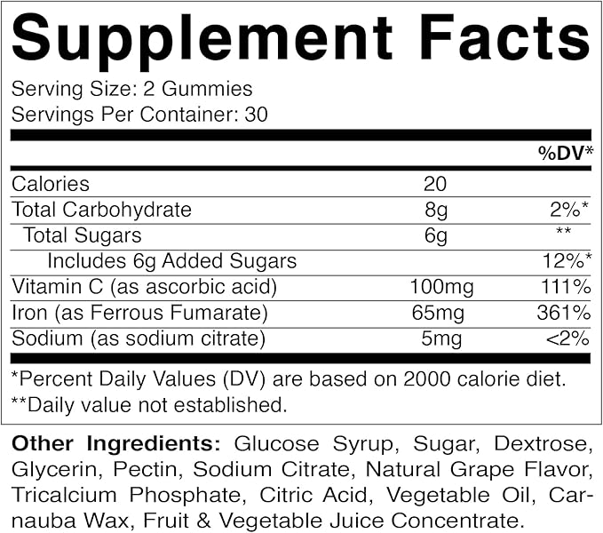 - VEGAN FRIENDLY - Our Iron Gummies are pectin-based which is vegan & vegetarian friendly