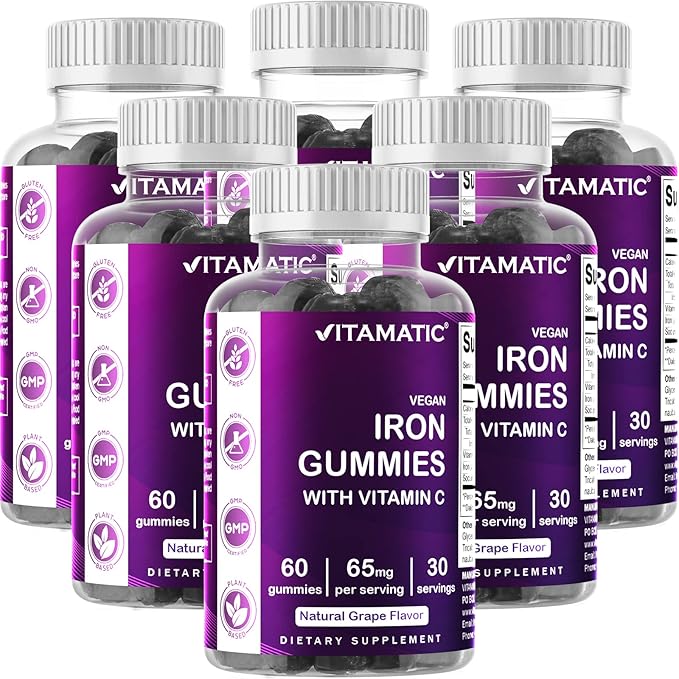Vitamatic Iron 65 mg Gummies Supplement for Women & Men - 60 Vegan Gummies - Great Tasting Iron Gummy Vitamins with Vitamin C (6)