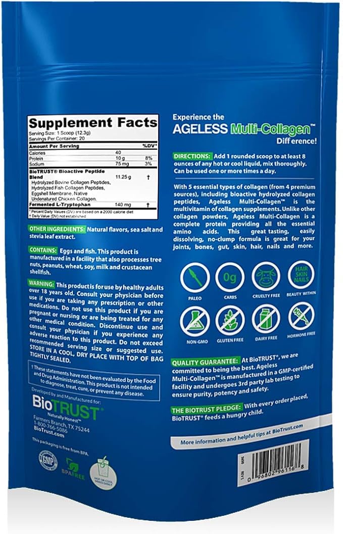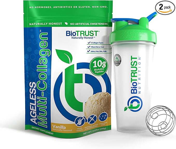 BioTrust Ageless Multi Collagen 5-in-1 Protein Powder (Vanilla) BlenderBottle Bundle