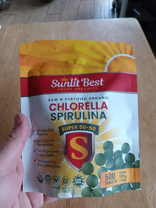 Sunlit Super 50/50 Organic Chlorella Spirulina Tablets - Super Supplement for Immune Support, Gut Health, Mood & Energy - Rich in Chlorophyll, Amino Acids & Vegan Protein, 500 Superfood Tabs