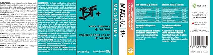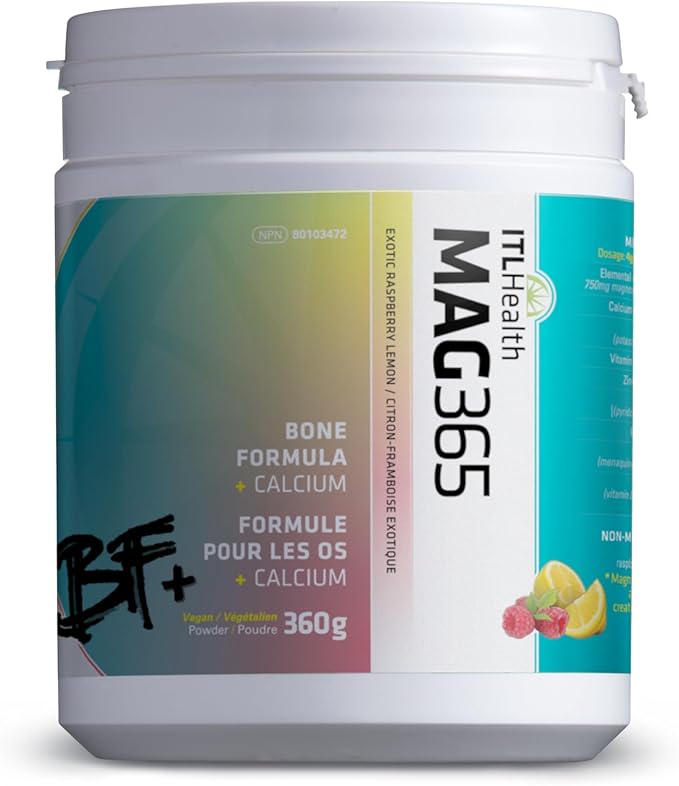 ITL Health BF Plus Calcium Zinc Magnesium Powder with D3, K2, C, B6, Boron, Zinc and Potassium | for Optimal Bone Health, and Immune Support (Exotic Raspberry Lemon, 360g)