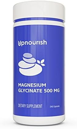 - UPNOURISH MAGNESIUM GLYCINATE CHELATE 500mg CAPSULES - HIGHLY ABSORBABLE CHELATED MAGNESIUM: Improve your health with Pure Magnesium Supplement for Sleep & Calm Support, Nervous, Muscle & Bone Health. Each capsule contains 500mg of magnesium glycinate, providing 70mg of elemental magnesium. A serving of 2 capsules provides 1000mg of magnesium glycinate, delivering 140mg of elemental magnesium, as shown in the supplement facts panel.