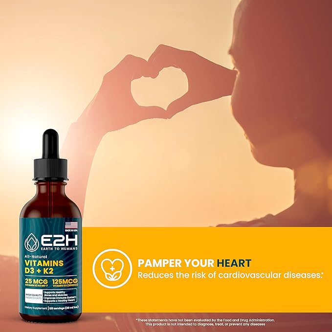 - MADE IN THE USA at GMP-compliant facilities, E2H Vitamin D3 & K2 Supplement is non-GMO, gluten-free, sugar-free and zero-calorie.
